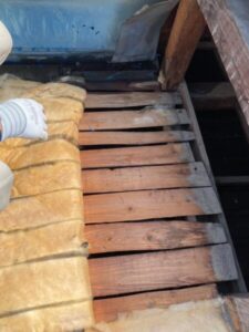 屋根の土台となる下地も劣化していため、補強のために野地板を設置していきます。