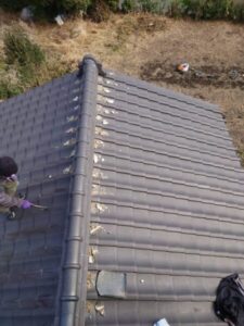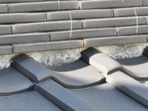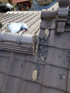 瓦の隙間にある漆喰が脆くなって剥がれてきています。