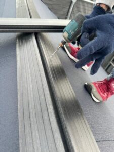 太陽光パネルを最後に取り付ける際にはキャッチ工法を使用し、太陽光を固定するアタッチメントを設置しました。