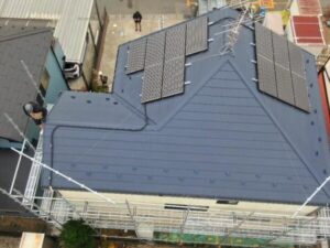 太陽光パネルを一旦取り外してから屋根をリフォームし、工事完了後にパネルを再設置するプランをご提案し、工事を進めさせていただきました。