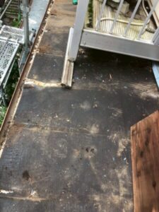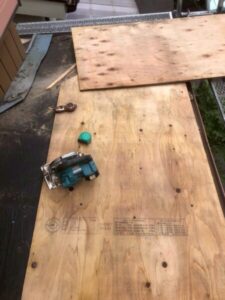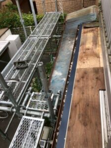 まずは下屋根の屋根材を捲り、下地から補強を行っていきます。