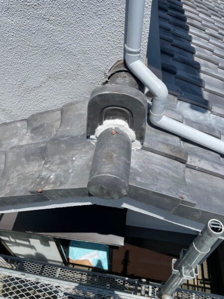 調査の結果、下屋根と外壁の取り合い部分の劣化が原因で、そこから雨漏りしていることが判明しました。
