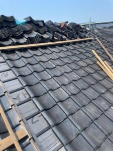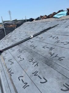 まずは既存の瓦を捲り、下地の補修、天窓を塞いでいきます。
