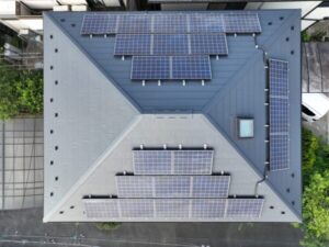 太陽工パネルが設置されているお住まいで、メンテナンスをご検討されていたそうですが、塗装ではなく、カバー工法での屋根修理をさせていただきました。