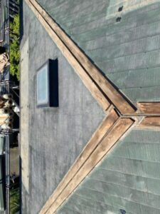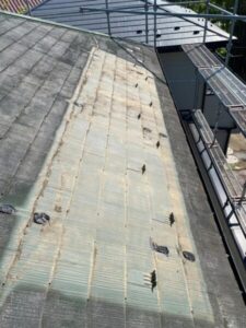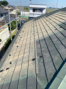 現地で確認させていただいたところ、屋根自体にはひびや割れのような、破損個所はなく、塗装が劣化している状態でした。