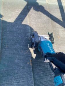こちら雪止め金具も突起となっていて、邪魔になってしまうので、電動のこなどを使用しながら切り落としていきます。