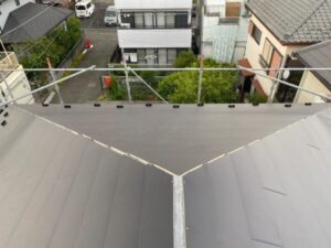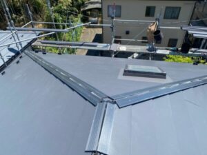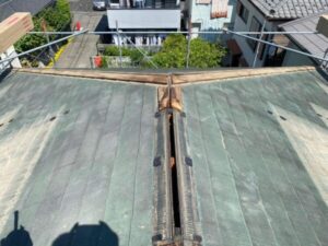 屋根の頂上部には屋根材と屋根材の隙間を覆うように「棟板金」とよばれる板金が設置されています。