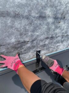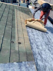 カバー工法では屋根の上から新しい防水シートを設置していきます。