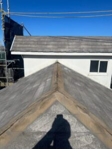 特に、こちらで使用していたスレート屋根は比較的カビが発生しやすい屋根材で、塗装によるコーティングが劣化してくると、防水機能が低下します。