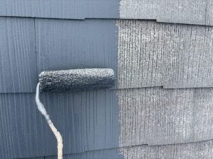 高圧洗浄で可能な限り屋根の汚れを落としてから、塗料を塗っていきます。