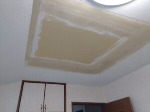 目立たぬよう天井と同様のクロスを貼って塞いでいきます。