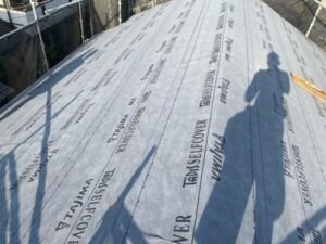 最初に屋根の上から防水シートを設置します。