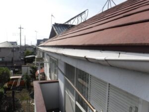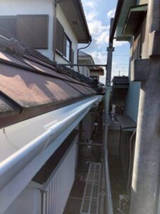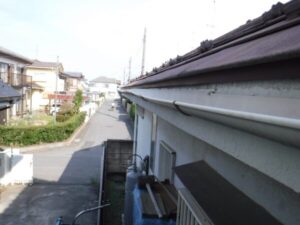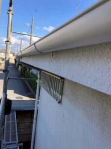 実際に確認させていただくと、1階2階ともに雨樋に歪みがあり、老朽化していることが判明しましたので、全体的に雨樋を交換させていただくことになりました。