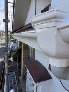 実際に確認させていただくと、1階2階ともに雨樋に歪みがあり、老朽化していることが判明しましたので、全体的に雨樋を交換させていただくことになりました。
