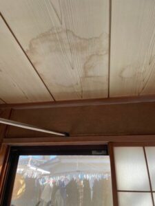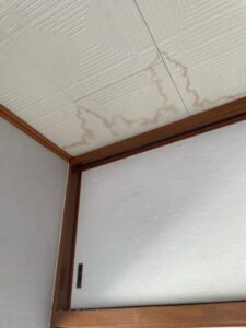 雨漏りのように実際に水滴が落ちてこないとそのままにしがちですが、雨染みをしているということは屋根に何らかの損傷があり、屋根裏で雨漏りになっている可能性があります。