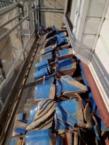 まず最初に既存の下地材、瓦を撤去していきます。