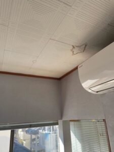 雨染みも一か所ではなく、様々な部屋の天井で見られました。