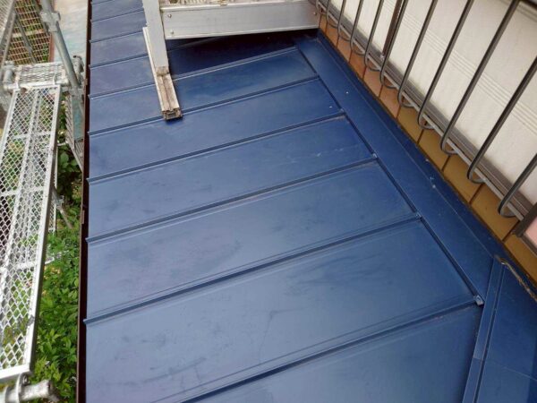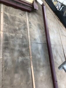 下地材にも負荷がかかりやすく、現在では生産終了しているため、別の屋根材への葺き替え工事が推奨されていますが、このままご使用になりたいとのご要望でしたので、新しく交換させていただいた箇所は塗装で対応させていただきました。