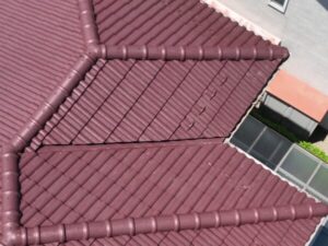 また、既存瓦は生産終了のモニエル瓦でしたので、交換した瓦に関しては、既存瓦との色の差異がなくなるよう、関西ペイントの「アレスダイナミック」を使用して塗装いたしました。