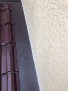 外壁と瓦の設置面は隙間があると雨漏りがしやすいため、雨押さえ板金を設置したのち、さらにコーキング材で埋めています。