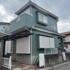 下地材にも負荷がかかりやすく、現在では生産終了しているため、別の屋根材への葺き替え工事が推奨されていますが、このままご使用になりたいとのご要望でしたので、新しく交換させていただいた箇所は塗装で対応させていただきました。