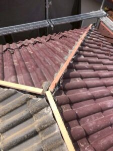 割れている瓦もありましたので、その部分は別のものにに交換させていただき、土台の野地板と、防水シートを新設した上で既存瓦を設置する「葺き直し」をおこなっていきます。