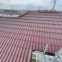 また、既存瓦は生産終了のモニエル瓦でしたので、交換した瓦に関しては、既存瓦との色の差異がなくなるよう、関西ペイントの「アレスダイナミック」を使用して塗装いたしました。