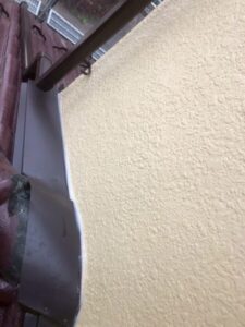 外壁と瓦の設置面は隙間があると雨漏りがしやすいため、雨押さえ板金を設置したのち、さらにコーキング材で埋めています。