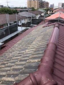 もともとご使用になられていたモニエル瓦はコンクリート製のため、一般的な瓦よりも重く、経年劣化でズレや歪みがでやすいという特徴があります。