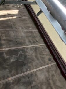 屋根の面と面の境目で谷状になる部分には専用の板金を設置し、集まった雨が沁み込んでいかないようにしています。
