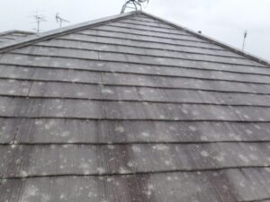 屋根はスレートをご使用になられていましたが、全体的に色褪せたうえに、斑点状のカビが多く、広がっています。
