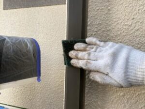 サンドペーパーを使用し、表面の汚れや古い塗膜を落としていきます。