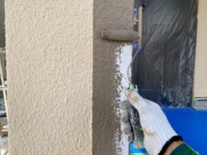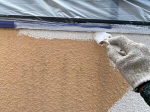 最初に接着剤のような役割を持つプライマーを塗り、トップコートの密着性を高めます。