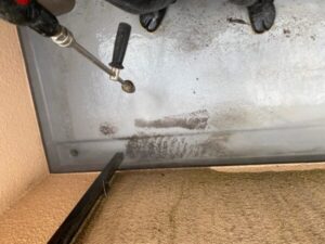 こちらに使用していたガイナ塗料は、断熱性、遮熱性、耐久性に優れた塗料ですが、表面に立体的な凸凹があるため、そこに汚れが溜まりやすいという欠点があります。
