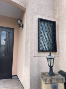 窓枠周りは、ベージュの外壁に合わせて、アクセントカラーとして薄めのグレーを使用しました。