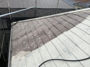 屋根は一度塗装されていたそうですが、すでに劣化が激しく、こちらも一目でわかるほど進行していました。