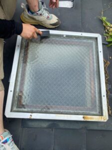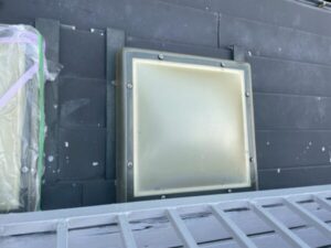 天窓のアクリル板のカバーがひび割れている状態でしたので、既存のものを取り外し、ポリカーボネート製のカバーを設置いたしました。