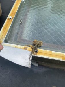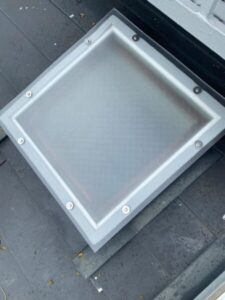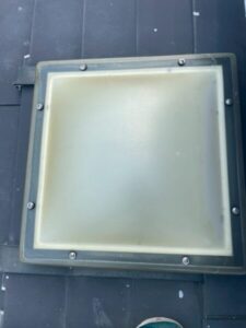 天窓のアクリル板のカバーがひび割れている状態でしたので、既存のものを取り外し、ポリカーボネート製のカバーを設置いたしました。
