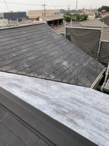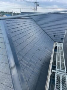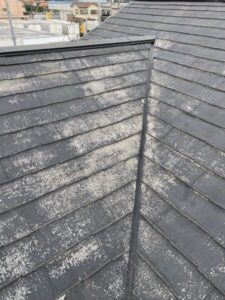 スレート屋根をご使用になられていましたが、建てられてから25年が過ぎ、しっかりと劣化が進んでいる状態でした。
