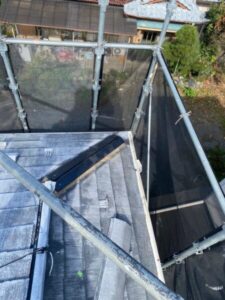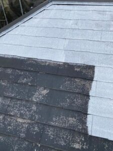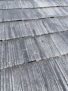 スレート屋根をご使用になられていましたが、建てられてから25年が過ぎ、しっかりと劣化が進んでいる状態でした。