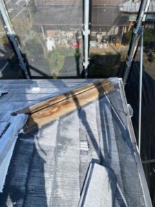屋根のそれぞれの角には棟板金と呼ばれる板金が設置されています。