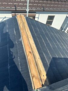 屋根の頂上部分には新しい貫板と棟板金を設置しました。