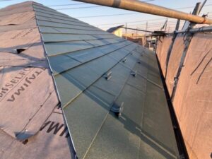 古い屋根の上から新規屋根材を設置する「カバー工法」で屋根のリフォームをおこないました。