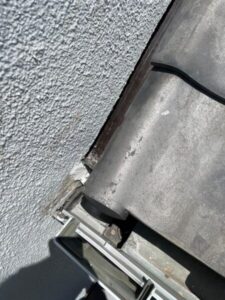 現地で確認させていただくと、外壁と下屋根の瓦との隙間から雨水が侵入していることが分かりました。