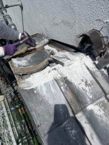 隙間を密閉し、その上から先ほど取り外した既存瓦をのせます。