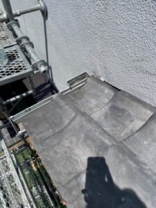 こちらの雨仕舞いには外壁と瓦の間に「水切り板金」が設置されていました。