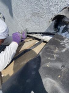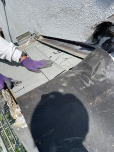 防水シートもかなり劣化しており、ボロボロの状態でした。