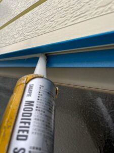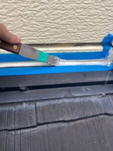ヘラを使用しながら、シーリング材の表面を平らにならしていきます。