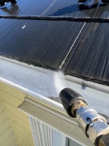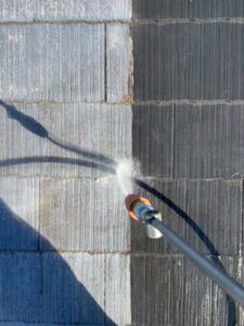 全体的に汚れがひどく、こびりついている状態でしたので、まずは高圧洗浄で落としていきます。