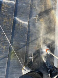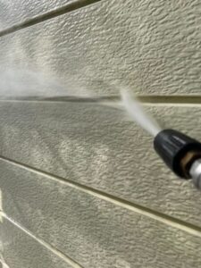 全体的に汚れがひどく、こびりついている状態でしたので、まずは高圧洗浄で落としていきます。